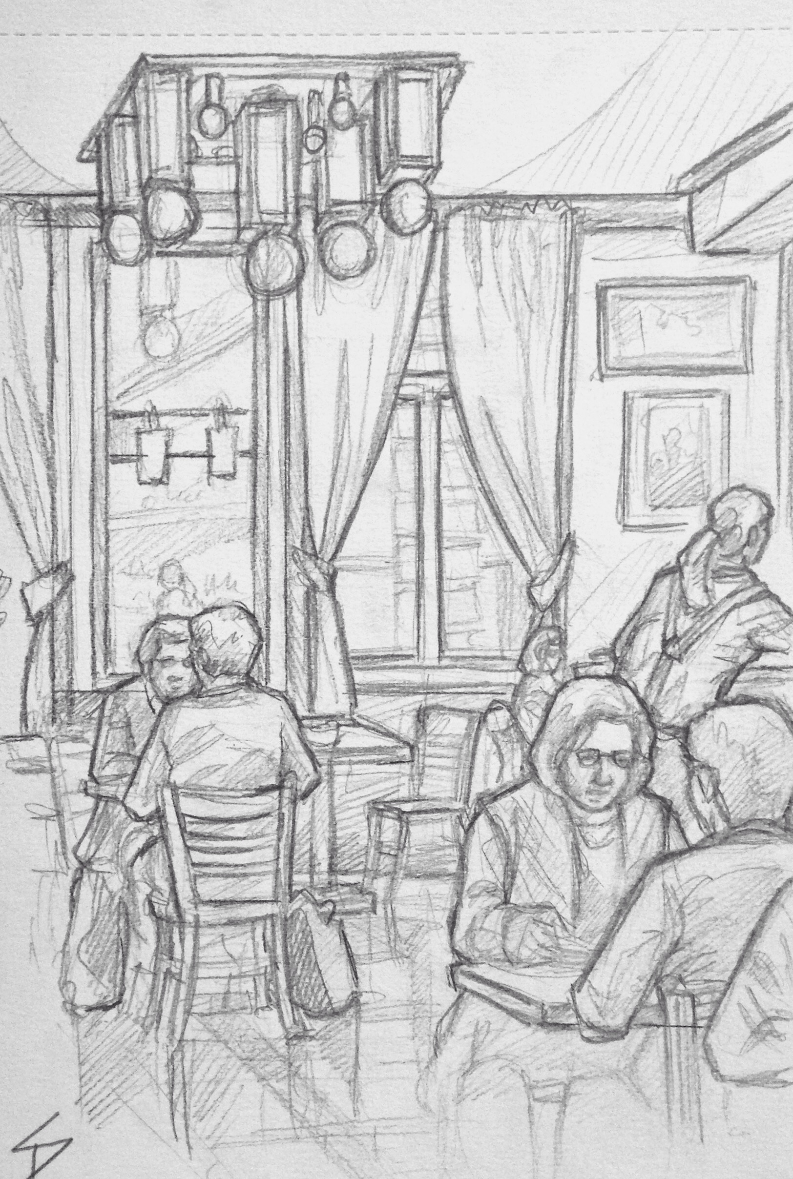 A spacious Art Deco restaurant and cafe. The building has an amazing Deco exterior facade. This was tricky to draw, since most of the people left, or moved, straight after I began drawing them. davidasutton.com @davidasutton #drawing #sketch #czech #prague #europe #bar #cafes #coffee #cafe #restaurant #cafeadria