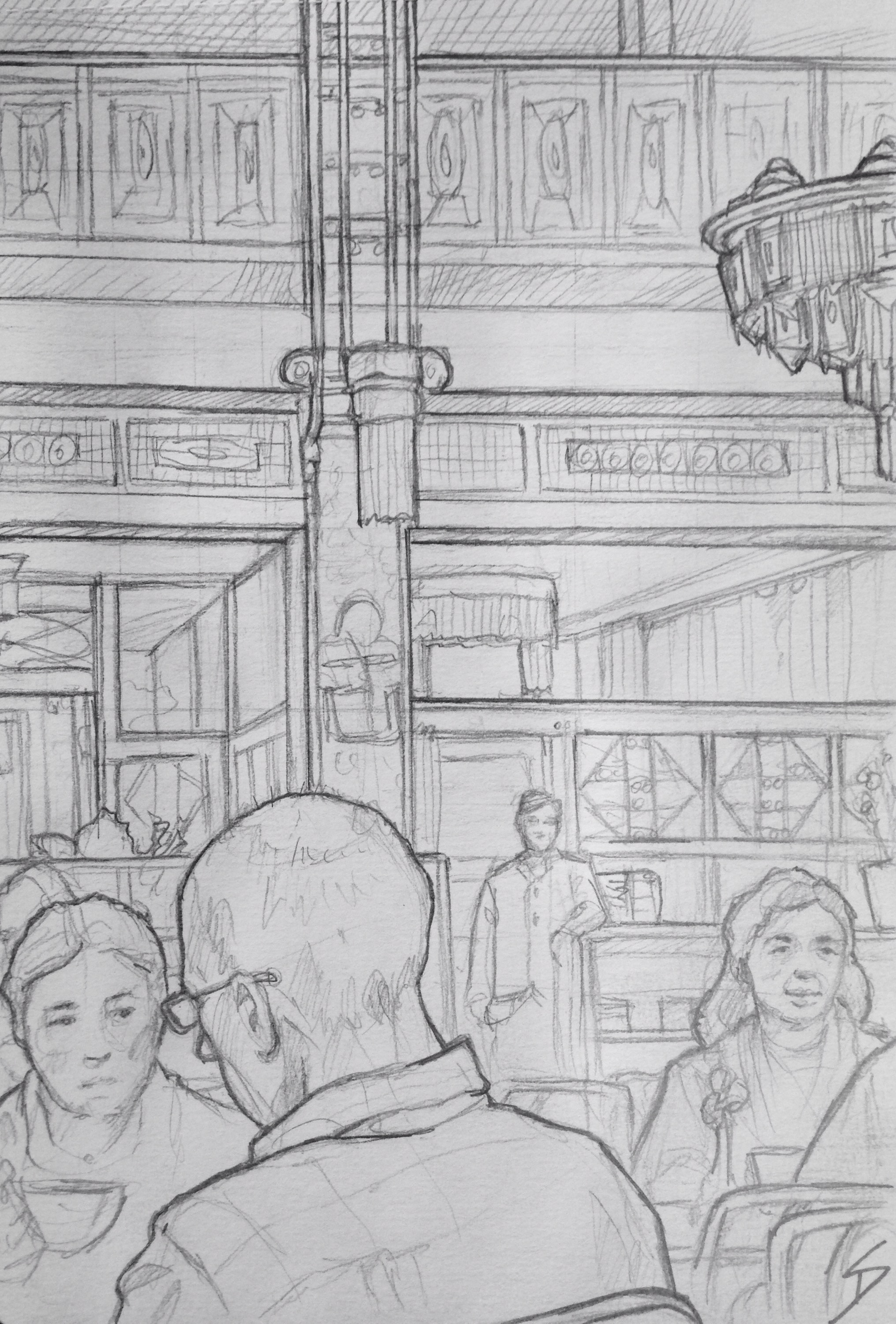 Sketching under stunning Art Deco lights, while listening to the sounds of a grand piano. davidasutton.com @davidasutton Facebook.com/davidanthonysutton #drawing #sketch #czech #prague #europe #cafes #coffee #cakes #cafe #travel #obecnidumcafe