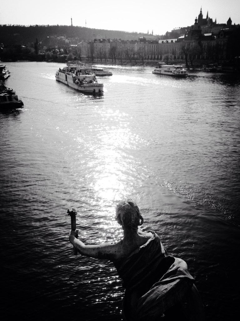 A bridge statue looking out over the Vltava river. davidasutton.com @davidasutton Facebook.com/davidanthonysutton #photograph #photo #czech #prague #europe #city #iphone #travelblog #travel #travelling #blog #cechuvmost