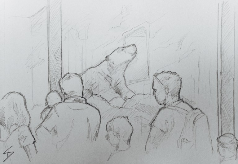 Crowds admiring a polar bear. This zoo was opened in 1931, and is considered amongst the top ten zoos in the world. sketchbookexplorer.com @davidasutton @sketchbookexplorer Facebook.com/davidanthonysutton #drawing #sketch #Prague #travel #travelblog #prahazoo #praguezoo