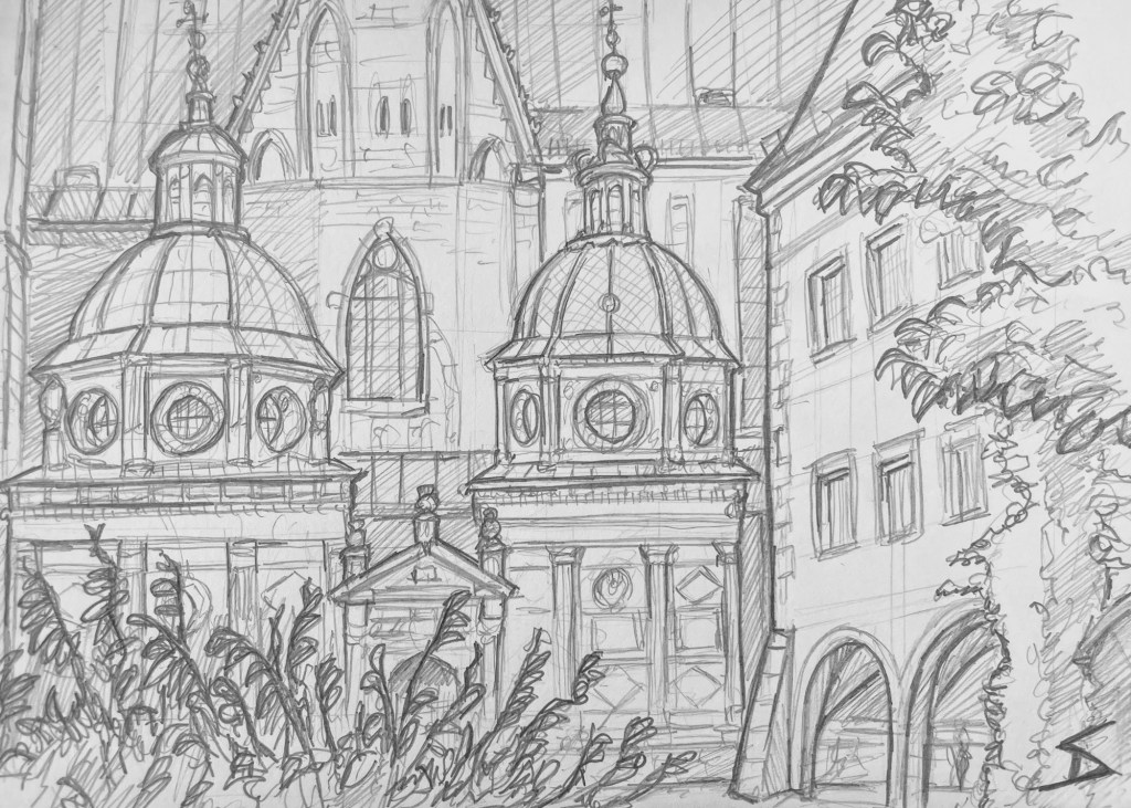 Urban art – Wawel, Krakow, Poland. ‘Wawel Royal Castle.’ Seeing it being created in my latest travel sketching video ‘KRAKOW IN THREE SKETCHES’ – https://youtu.be/BsdqAUj3UWk